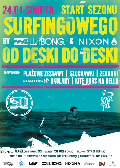 Jako że w morskim klimacie wszystko utrzymane będzie – muzycznie czynił będzie rezydent i programowy opiekun Solarskiego Beach Baru – Glasse, a pomagać mu będą Base w towarzystwie debiutującego w SQ, świetnego wokalisty – Jacoba A.