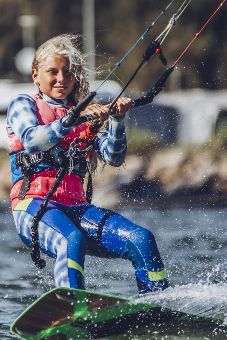 Zajęcia praktyczne: przygotowanie sprzętu, sterowanie małym latawcem treningowym na lądzie, sterowanie dużym latawcem w wodzie, samodzielny start latawca z wody, startowanie i lądowanie latawca na wodzie z asystentem, użycie systemu bezpieczeństwa, samodzielne przygotowanie sprzętu, body dragi – ślizganie się za pomocą latawca bez deski (w dół wiatru, na halsie i pod wiatr), zakładanie deski, pierwsze próby z deską, koordynacja ciało-deska-latawiec, start z deską, steady pull, krótkie halsy prawo/lewo, pływanie w obu kierunkach, kontrola prędkości, utrzymanie wysokości, składanie sprzętu, kontrolowane zatrzymanie się, krawędziowanie, pływanie pod wiatr, zwroty.